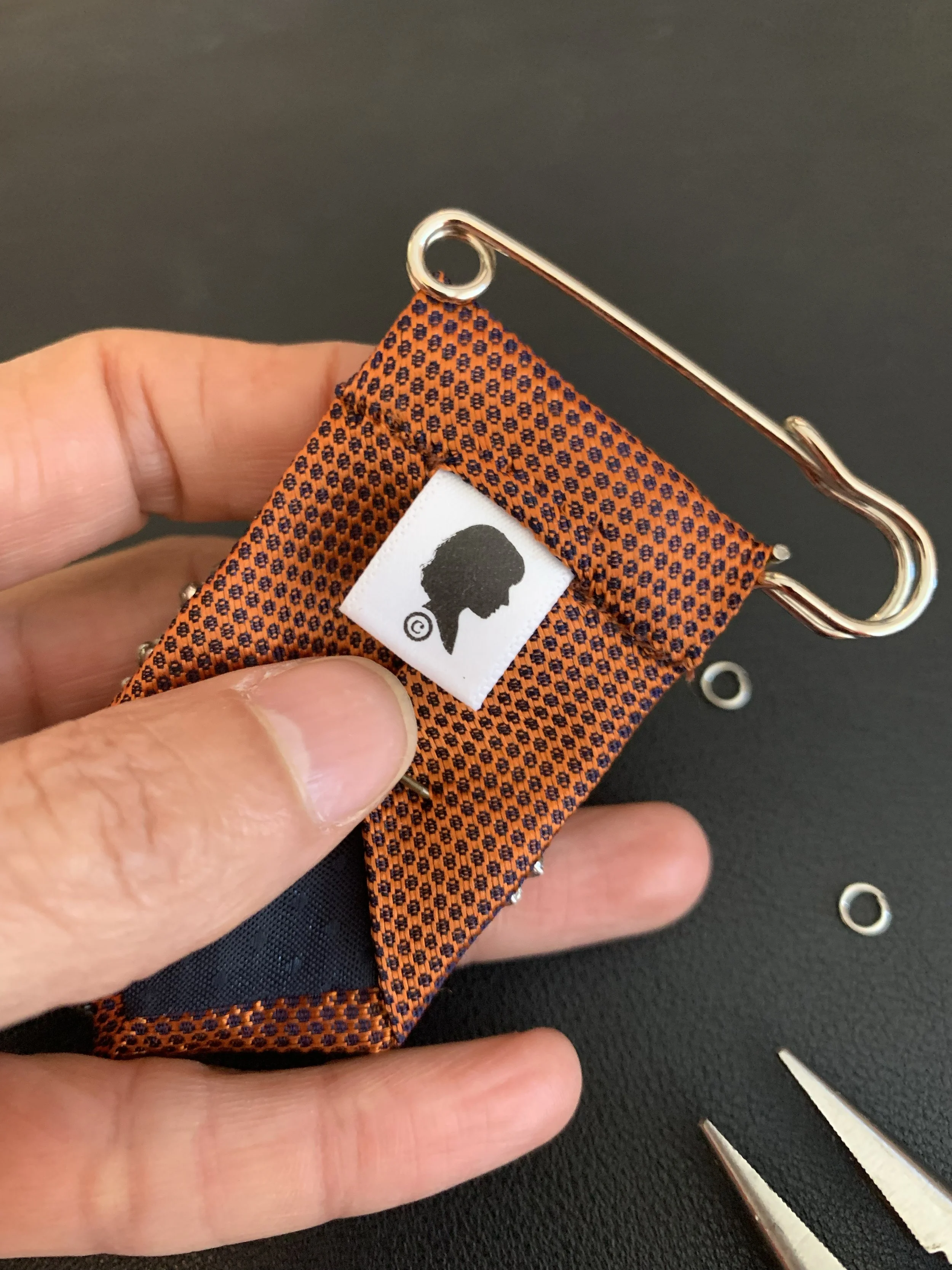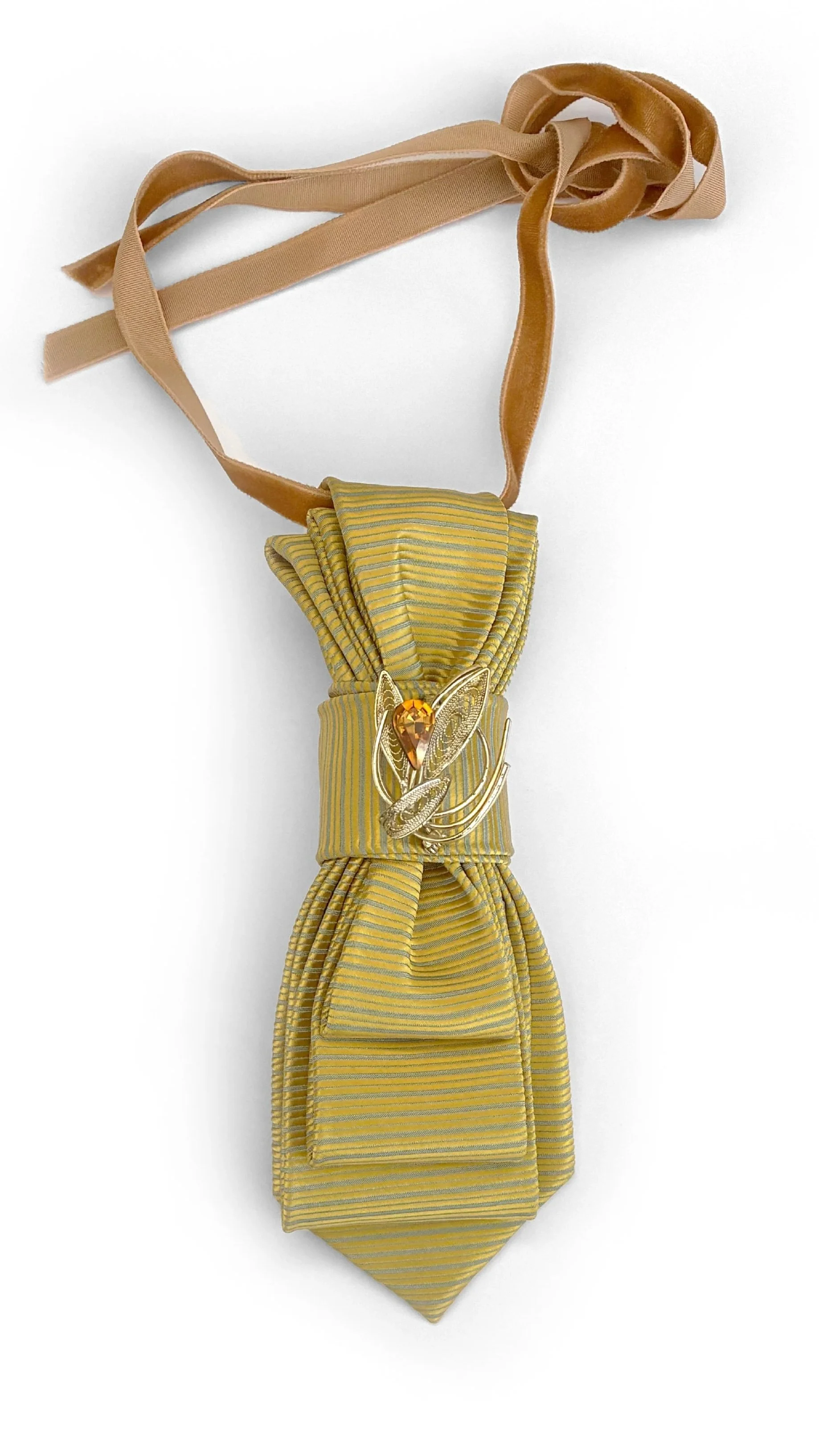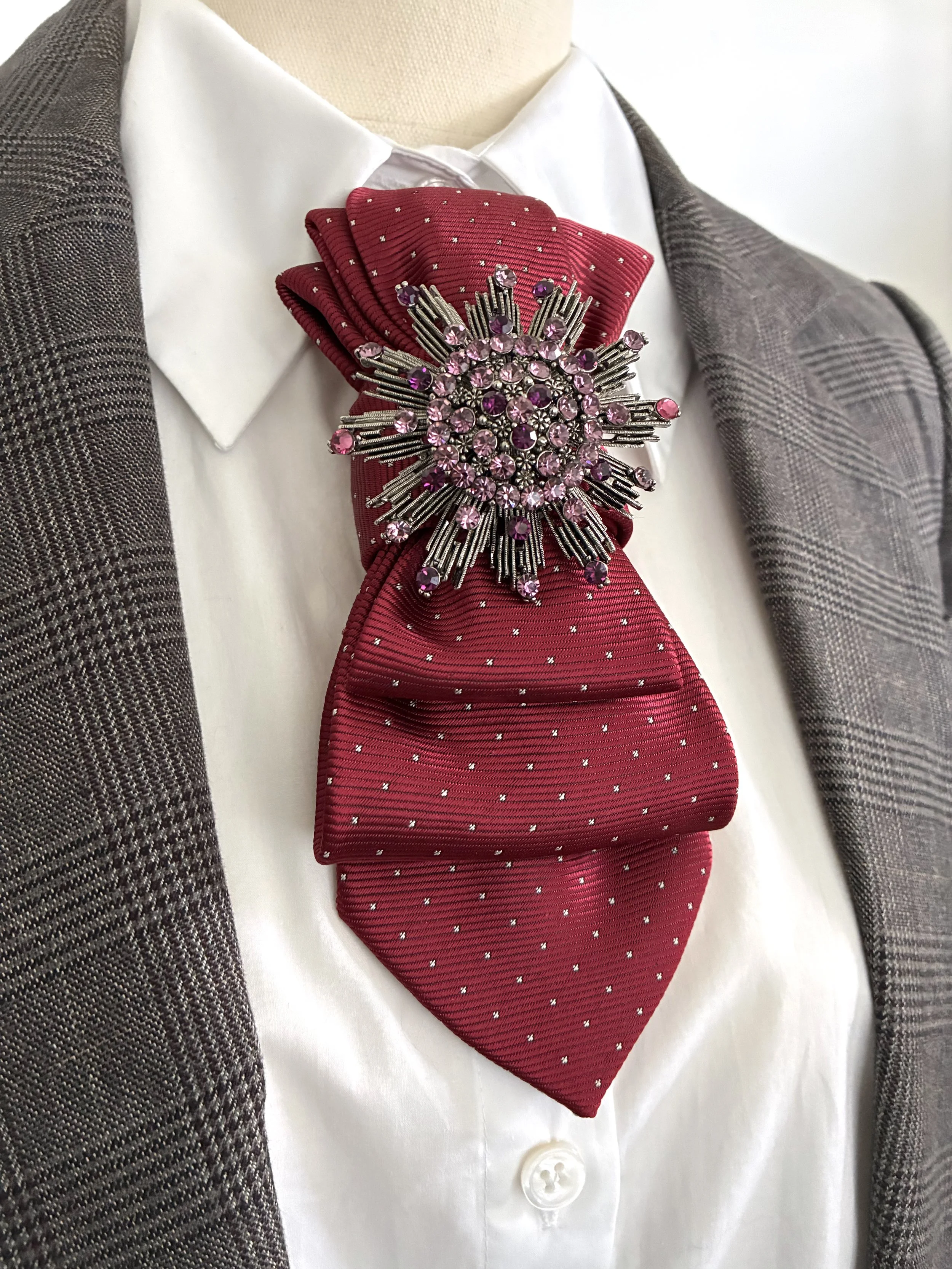 Dapper Ties are reimagined from upcycled vintage ties and thoughtfully paired with brooches.