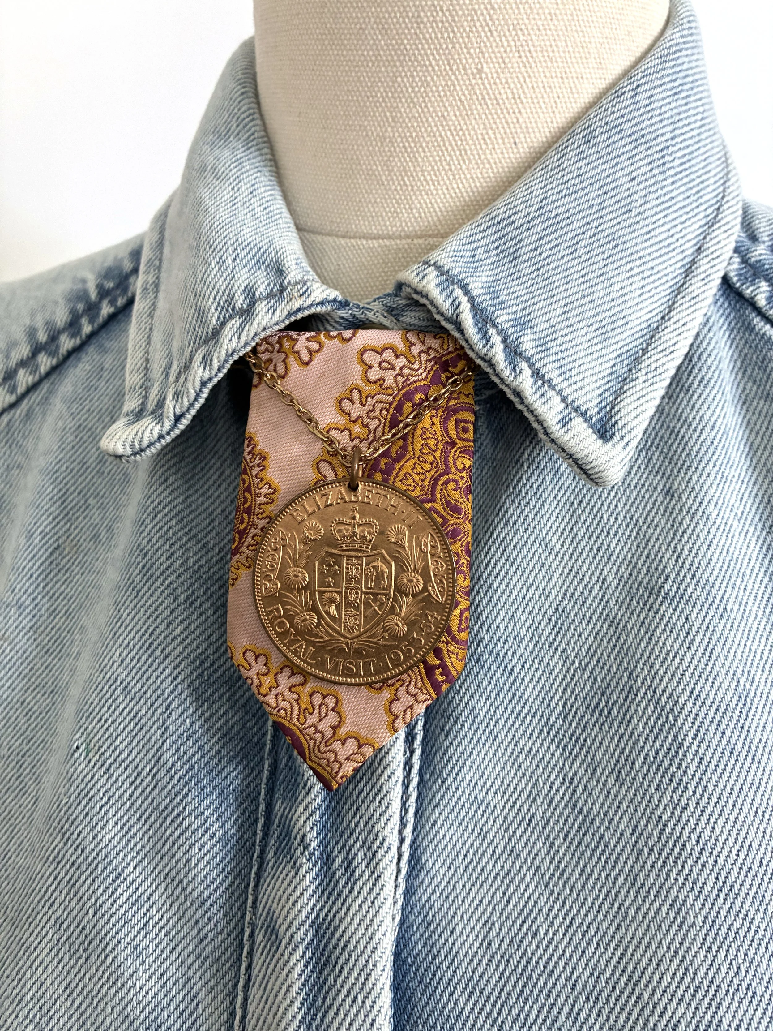 Crafted from upcycled vintage ties, badges, brooches, and op shop jewellery finds. The Legend Series is a nod to medals and honours.